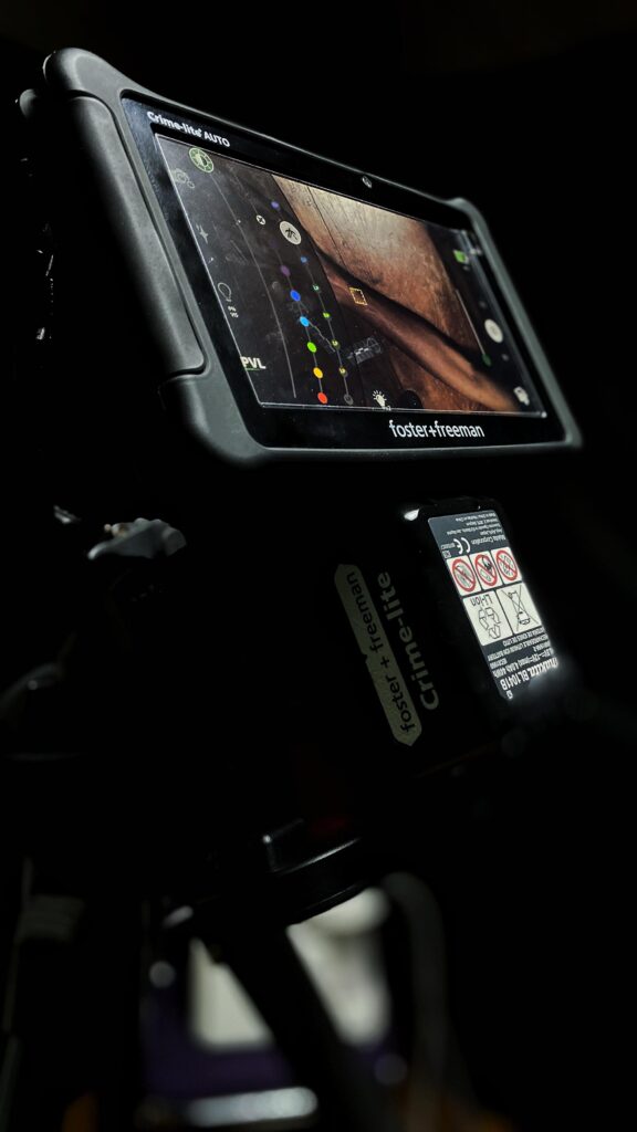 As part of our commitment to forensic innovation, we have provided the cutting-edge Crime-lite AUTO system to support a forensic expert in conducting advanced research. This collaboration explores new applications of multi-wavelength illumination for detecting biological traces such as blood, sweat, and fingerprints across various surfaces. The research findings will contribute to the continuous enhancement of forensic methodologies, reinforcing the reliability and effectiveness of Crime-lite AUTO in real-world investigations.